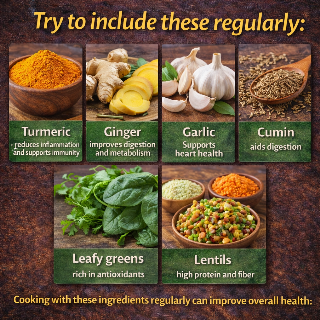 The good news is that traditional Indian cuisine already contains many natural anti-inflammatory ingredients. Spices like turmeric, ginger, cumin, and garlic have been used for centuries not just for flavor, but also for health.