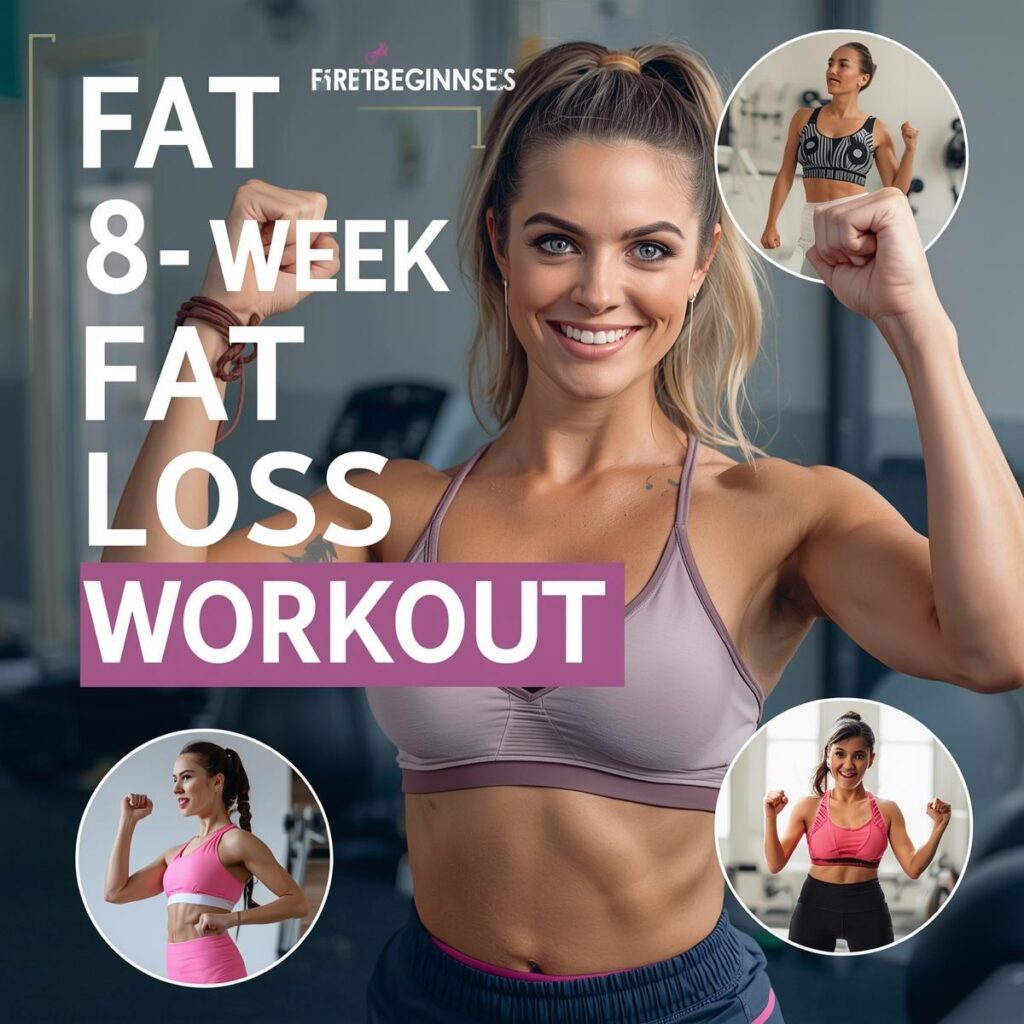 This 8-Week Fat Loss Workout for Beginners is a structured fitness plan designed to help you burn fat, build lean muscle, and improve overall endurance. It combines strength training, cardio, and HIIT (High-Intensity Interval Training) to maximize calorie burn and boost metabolism.Each week gradually increases in intensity, allowing your body to adapt safely while maintaining steady progress. The program focuses on full-body movements, core strengthening, and functional exercises that improve balance, flexibility, and stamina.